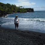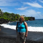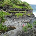 Next we came to Wainapanapa State Park (Shimmering Water).  This is a black sand beach.  Very different and very cool.  There was a lava tube here that was safe to go into.  I didn’t feel comfortable going in, but  Steve did and he took some pics…  You can figure out which ones were in the lava tube!
