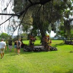 Next, we were off to Kipahulu to see Charles Lindberg’s gravesite.  According to our tour guide,Charles Lindberg lived in Maui for the last several years of his life – he hated the publicity and wanted to be away from the public eye.  He died in 1974 (?) and was buried at this awesome looking little church at Palapala Ho’omaui in Kipahulu.  Beautiful grounds.  His pets are also buried there, but his wife is buried with her family in  Connecticut.  I find it kind of sad how he was so shy and hated being a public figure, and is buried in a beautiful, peaceful place that should have given him the solitude in death that he so wanted in life, but even in death he couldn’t get away from it. – Millions of people stop to visit his gravesite and take photos.  Us included.  I kind of felt like I was intruding.