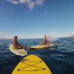 John took them out around the point to turtle town, where they saw several turtles. One even was using the fin on Steve’s board to scratch himself. The guys LOVED their experience and will both definitely do this again. Steve says he had a zen moment out there, peacefully paddling along.
